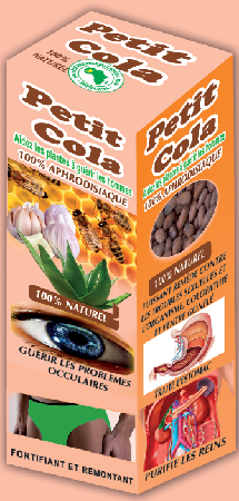 Sirop composé d’eau minérale, petit cola, mourou, calaba, miel, ail, aleovera. Indication contre les troubles sexuels, infections génitales, purifie l’organisme,