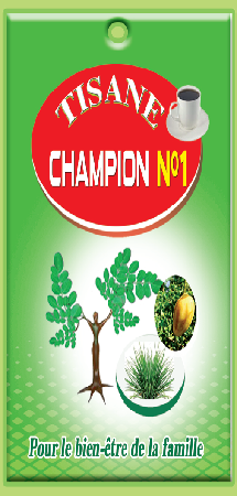 La tisane Champion N°1 est Composée de Moringa, aléovera, citronnelle, N’goré. Indiquer contre la constipation, la dysenterie, diarrhée, choléra, maux de ventre.