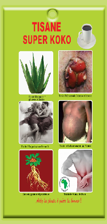 Cette tisane est composée : Eau minérale, petit cola, mourou, calaba, miel, ail, aleovera. Indiquer contre les troubles sexuels, infections génitales, purifie l’organisme,